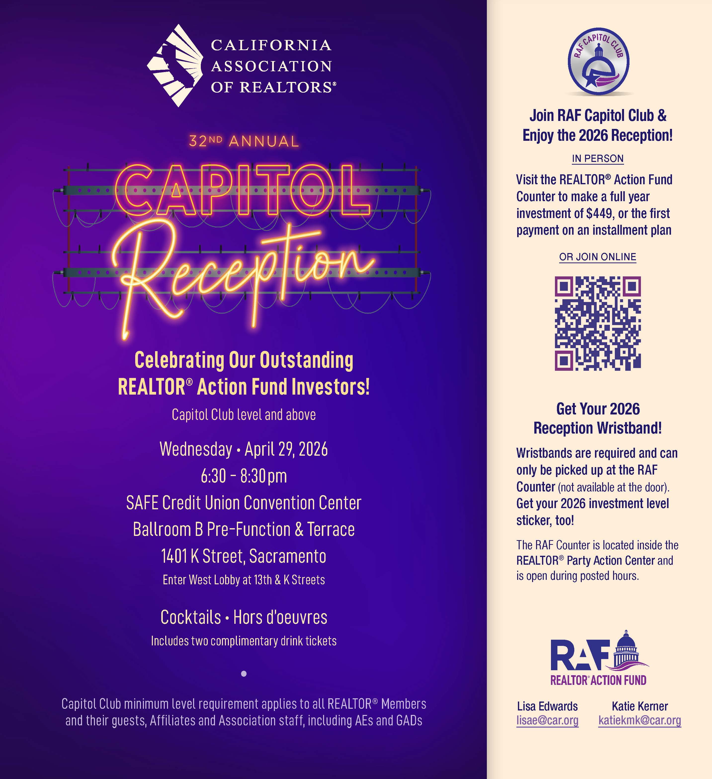 REALTOR® Party “Purple Store”: This brand-new, REALTOR® Party of California-branded online merch store lets you show off your RPC pride in style, while supporting the REALTOR® Action Fund. Every dollar spent applies directly to your RAF Investment, making it a fun and easy way to participate. Get ready to go purple!